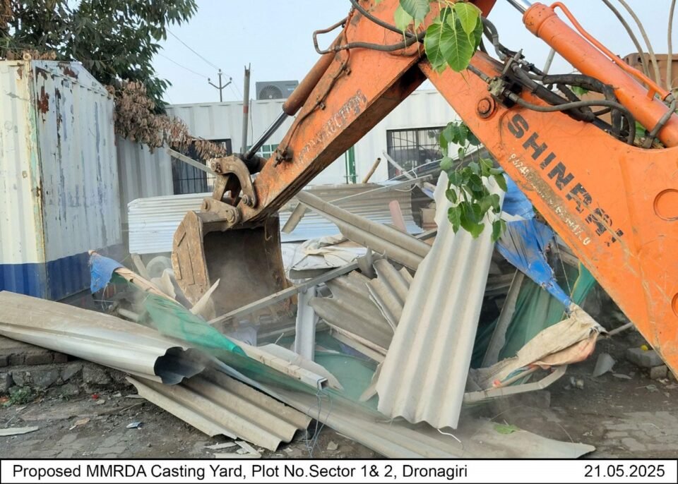 या पार्श्वभूमीवर सिडकोच्या व्यवस्थापक (शहरसेवा-3) यांच्या 13 मार्च 2025 रोजीच्या पत्रानुसार, द्रोणागिरी नोडमधील सेक्टर-1 व 2 येथील 20 एकर भूखंड मुंबई महानगर प्रदेश विकास प्राधिकरणास कास्टींग यार्डसाठी प्रदान करण्यात आला आहे. दिनांक 21 मार्च 2025 रोजी झालेल्या स्थळपाहणीत सदर भूखंडावर कंटेनर, केबिन, पत्राशेड, हॉटेल व पार्किंग अशा स्वरूपातील अतिक्रमण आढळून आले. ही अतिक्रमणे श्री. जितेंद्र पाटील, श्री. अविनाश घरत, श्री. मंगेश पाटील व श्री. दत्ता भिवा ठाकूर यांच्या नावाने असल्याचे निष्पन्न झाले.